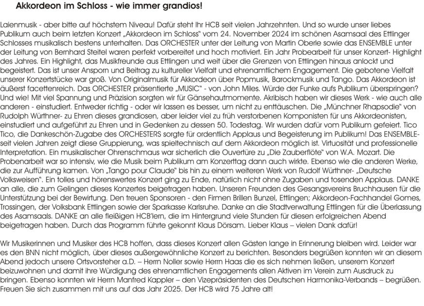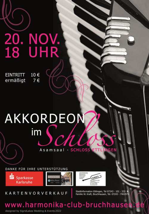 20. November 2022: Konzert “Akkordeon im Schloss” - Asamsaal Schloss EttlingenDer HCB freut sich